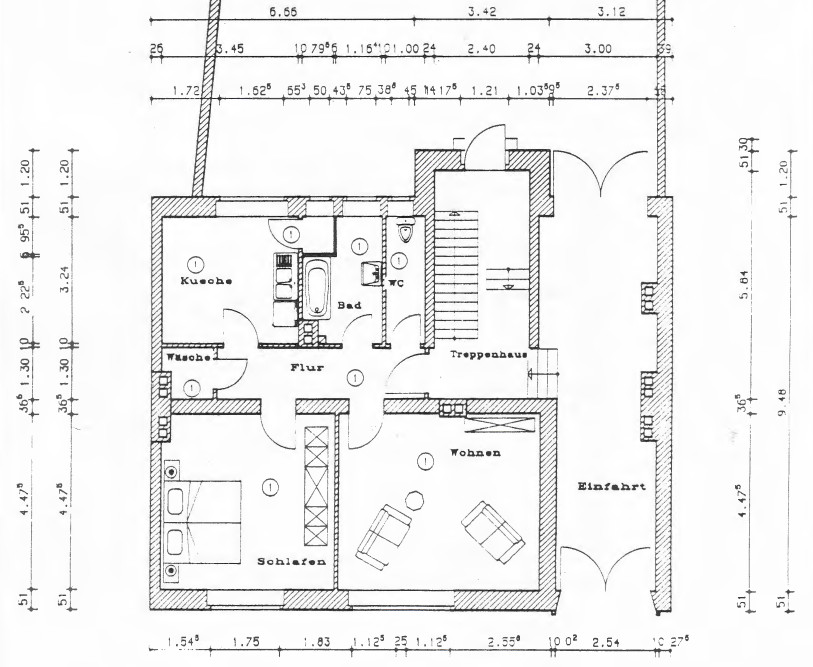 Im ersten Ansatz, versuchte ich die Immobilie zu renovieren und wieder zu vermieten. Der Zustand der elektrischen Leitungen erwies sich allerdings als untragbar. Die Leitungen waren zu 80% aus dem Jahre 1954. Insgesamt 4 Mieter hatten zudem ihre Installationsleichen in den Wänden hinterlassen. Die Verbindungen in den Abzweigdosen sowie die Kabelisolierung ( Stegleitungen ) waren porös und schadhaft.